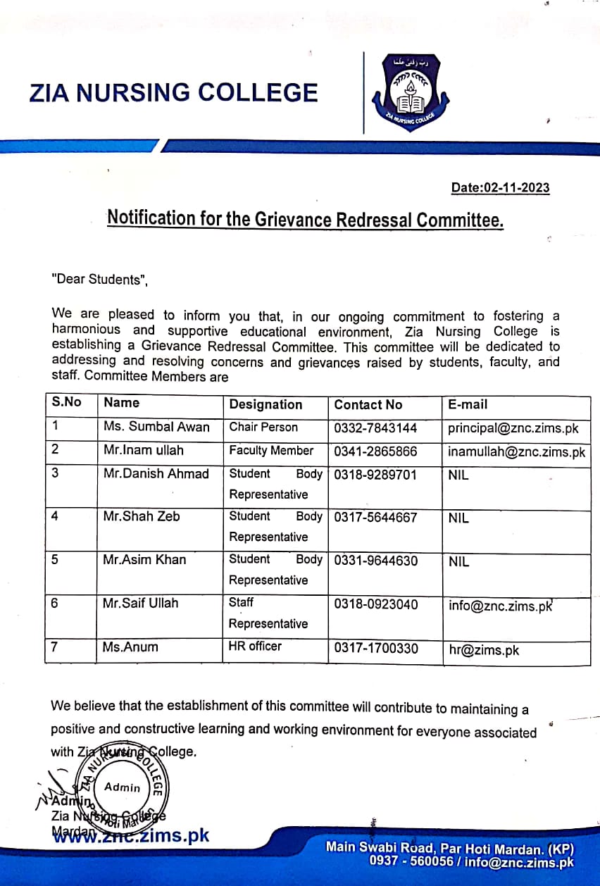 - Written complain against the defaulter from students/ complainant to chairperson.